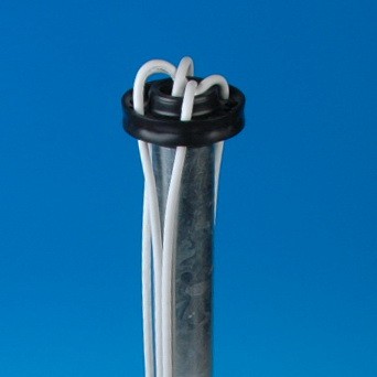 Wodoodporna nasada na maszt antenowy wraz z przejściówką dla kabli antenowych. Możliwość przeciągnięcia 12 kabli antenowych. Nasada pasuje na maszt o średnicy od 42 - 50 mm. Kolor czarny, odporna na promienie UV.