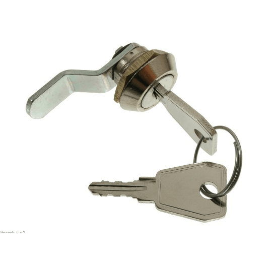 Zamek jednopunktowy przeznaczony do montażu w obudowach TPR oraz OMP. Zestaw z dwoma kluczykami.