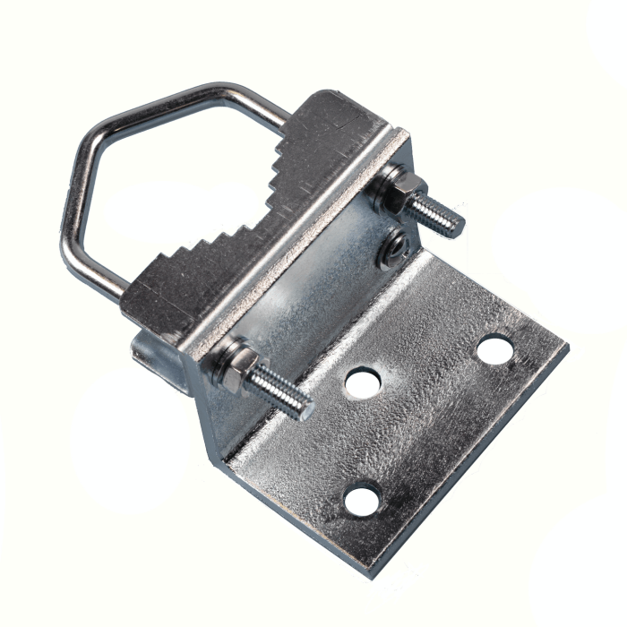 Mocowanie masztu do krokwi dachu - mocowanie dolne Art.nr 05.009 Max. średnica masztu 60 mm. Przyłącze do podłączenia przewodu wyrównania potencjału.