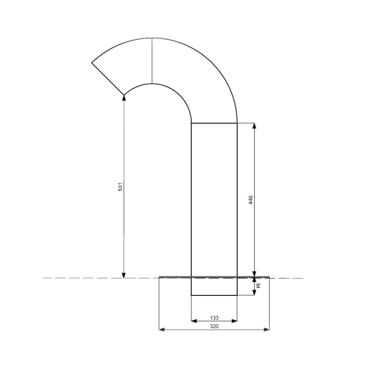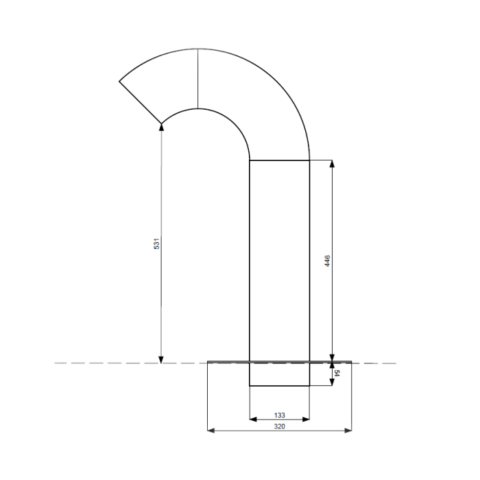 kołnierz wspawany na wysokości 54 mm od początku rury.