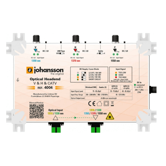 Optyczny kompaktowy Headend 4004 konwertuje szerokopasmowe V/H, CATV na długość fali optycznej 1350-1370-1550nm w połączeniu z 1310-1330nm z REF.4002