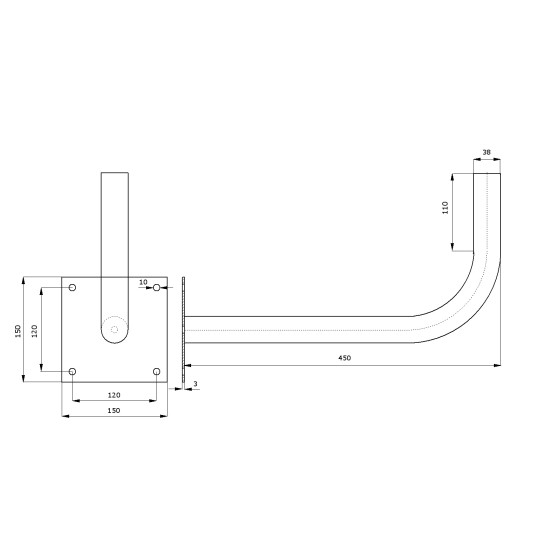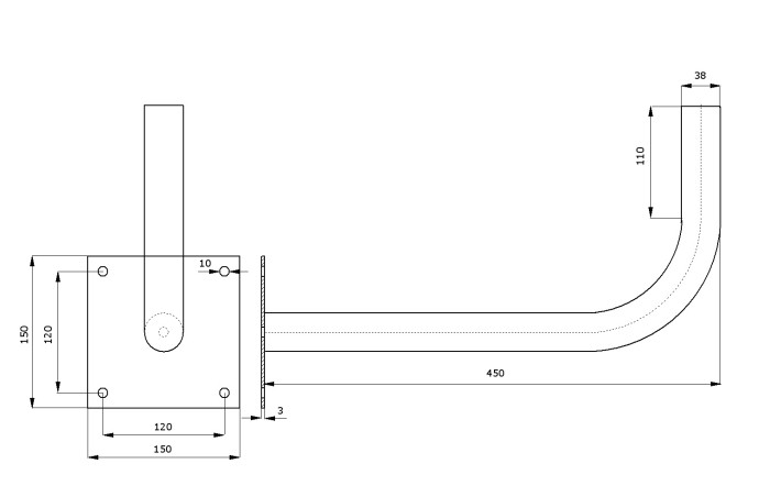 Uchwyt ant.sat. z rury 38 mm L450 Art. nr 01.003