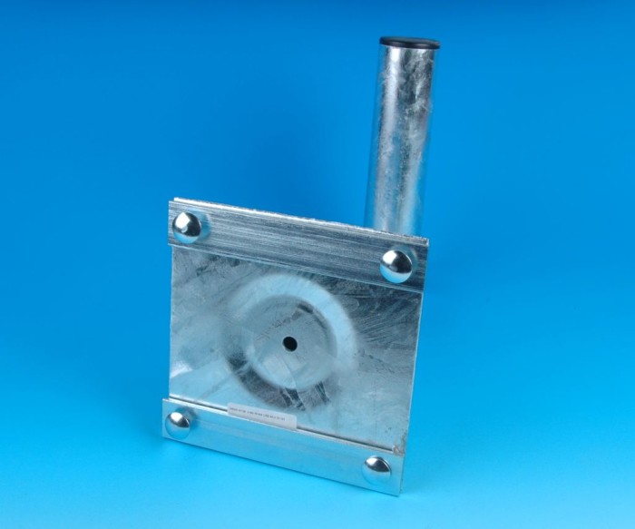 Uchwyt składa się z dwóch płaskowników, które posiadają rozstaw otworów identyczny jak podstawa uchwytów anteny satelitarnej wykonanych z rury 48 mm.