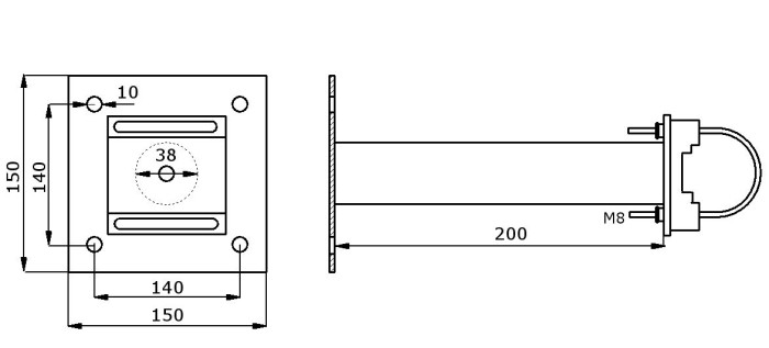 Uchwyt masztu antenowego - murowy 20 cm.