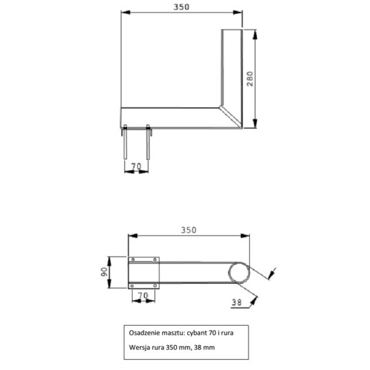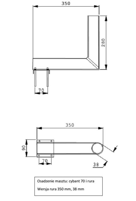 Uchwyt anteny balkonowy z rury 38 mm dolny L350.