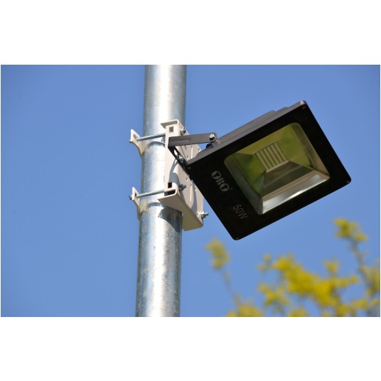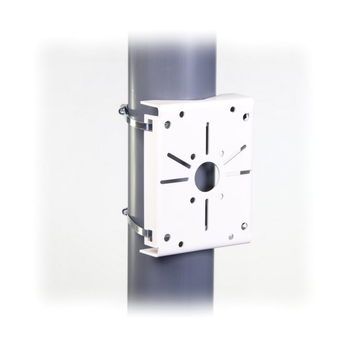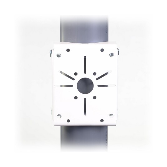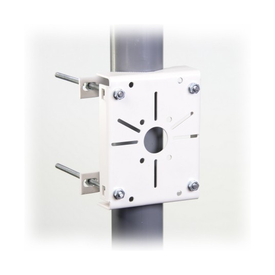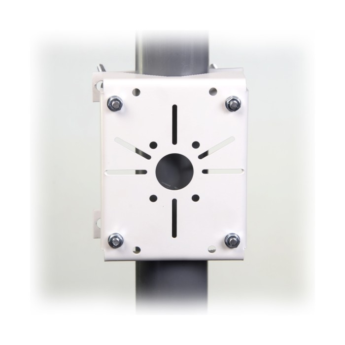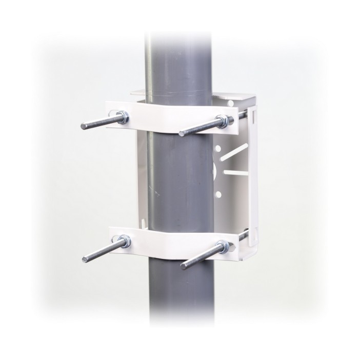 Uniwersalny dwustronny uchwyt do kamer monitoringu umożliwiający montaż na masztach o średnicy od 40 mm do 140 mm za pomocą uchwytów. W zestawie dostarczane są pręty gwintowane ze stali nierdzewnej M8 o długości umożliwiającej montaż na masztach o średnicy max. 14 cm oraz nakrętki i podkładki M8.