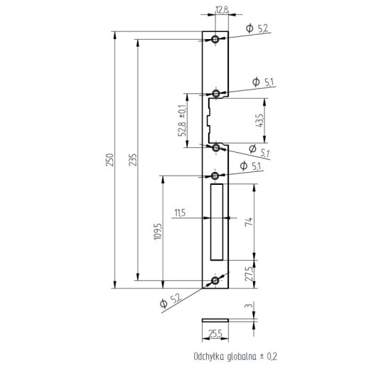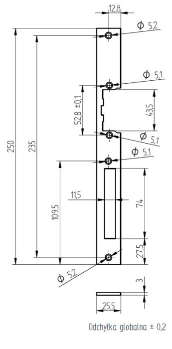 Szyld prosty długi przeznaczony jest zarówno do drzwi lewych jak i prawych. Szyld pokryty jest powłoką cynkową.
