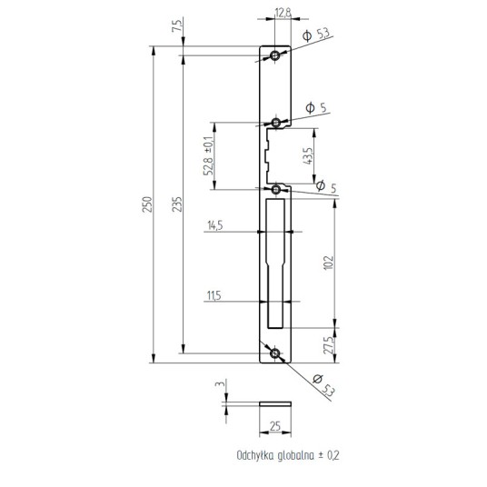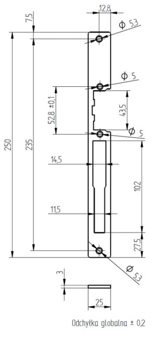 Stopniowane wcięcie ułatwia współpracę z językami zamków hakowych. Szyld pokryty jest powłowką cynkową.