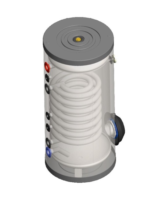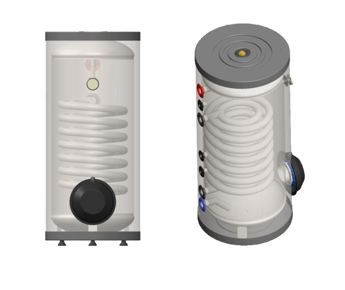 Zasobniki CWU emaliowane, z wężownicą, izolacja 60 mm, płaszcz zewnętrzny metalowy.