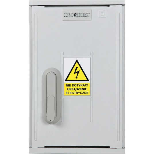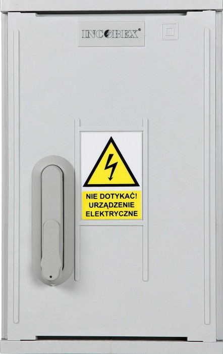 Rozdzielnica Incobex serii STN 250 o wymiarach:Szerokość 260 mmWysokość 580 mm Głębokość 250 mm Wyposażona w katowniki montażowe, daszek prosty.Pasująca wkładka zamka (do zakupienia osobno): WRS-K