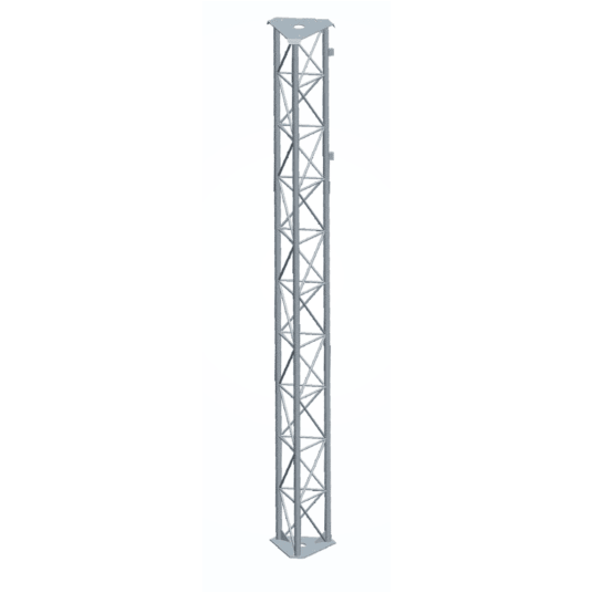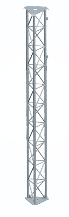 Stalowy maszt kratownicowy o długości 300 cm Wykonanie z rury 30 x 3 mm Podstawa masztu kratownicowego o wymiarach 280x280x280 x 4 mm Wyposażony w uchwyty do mocowania linek odciągowych Ocynkowanie ogniowe Waga 32 kg.