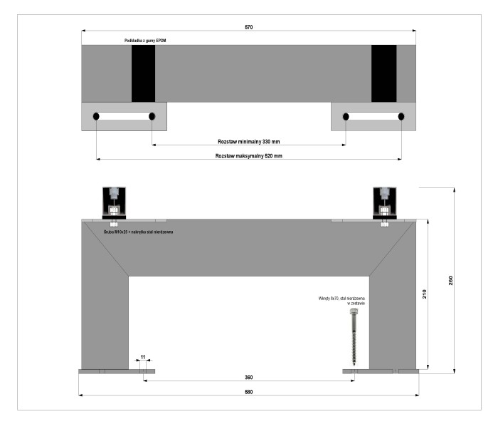 Stojak pompy ciepła - uniwersalny L1250, RAL7016